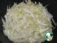 Капусту очистить от верхних листьев и нарезать узкими пластинами. |