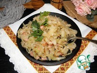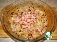 Перемешать капусту с окороком |