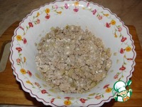 Готовим начинку: лук и чеснок очень мелко нарезаем, растапливаем сливочное масло в сковороде на небольшом огне, кладем лук и томим его минут 10 |