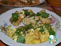 Выкладываем на тарелочку деруны (осторожно они очень нежные), мясо с грибами, поливаем заливкой, посыпаем зеленью и подаем. Если горшочки порционные, то подаем прямо в них. |