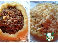 В корзинку из картофеля поместить фаршированный шампиньон, сверху положить нашинкованный сыр. |
