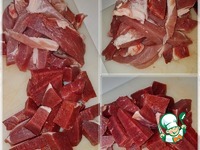 Во-первых, мясо. Свинина и говядина. Мяса взяли мы в пропорции шестьдесят к сорока. Свинины побольше. |