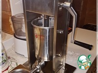 И, чтобы облегчить процесс набивания, был приобретен вот такой агрегат. Колбасный шприц называется. Очень облегчает процесс. Очень. |