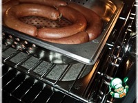 Готовую колбасу можно обработать разными способами. Но нам нравится обработка в духовке. Температура в духовке – оптимально должна быть не более ста градусов. Оптимально даже около девяноста. |