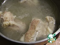 Горох заранее замочить (я оставила на ночь). Сварить мясной бульон (около 3-х литров). |
