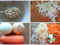 Замочить перловую крупу на ночь. Приготовить овощи. Лук измельчить. Брюкву и морковь нашинковать соломкой. |