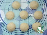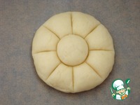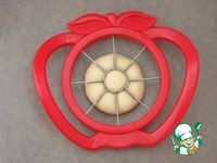 Приспособлением для нарезки яблок слегка надавить на колобок теста. |
