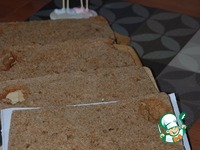 Коржи немного! остудить, обрезать края, разрезать горизонтально пополам. У меня пузыри при выпечке всё таки образовались. Ну что уж есть. Правда жизни! |