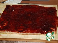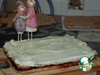 Первый корж промазываем повидлом (густым вареньем), накрываем вторым коржом. |