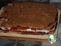 Накрываем третьим коржом, мажем повидлом и кладём четвёртый корж. "Правду жизни " я прикрыла обрезками коржей. Нужно же выходить из положения! |