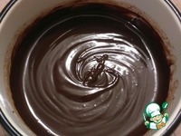 Выложить ганаш на корж. Поставить на холод на 1-2 часа. За это время ганаш застынет (на фото ганаш не застывший, потом поверхность станет более ровной и гладкой). |