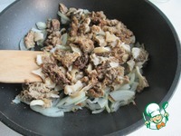 На сковороду налить 2-3 ст. л. растительного масла, нагреть и выложить лук. Жарить на медленном огне. |