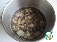 Перед второй варкой снова промыть. В кастрюлю налить свежую воду, довести до кипения, посолить и опустить в кипяток нарезанные грибы. Варить 10 минут. |