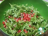 Рукколу нарвать удобными для еды кусочками или оставить как есть. Выложить в глубокую миску, добавить зерна граната. Часть оставить для украшения. |