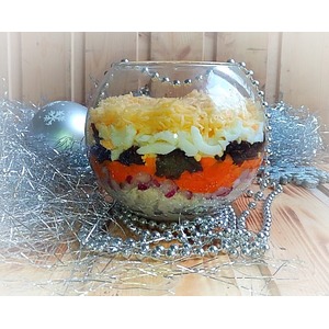 Морковь натереть на крупной терке, сыр на мелкой. Собрать салат слоями. 1) курица+майонез 2)лук 3)морковь+Майонез 4)чернослив 5)яйцо+майонез 6) сыр |