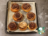 Описание: Всем известны вкусные и ароматные булочки синнабон, которые придумали в сети одноименной кофейни. Хочу Вас, познакомить с не менее вкусными и знаменитыми шокобонами, для истинных любителей шоколада. Начинка из тертого шоколада, глазурь с шоколадным сливочным сыром и сверху растопленный шоколад. Тесто по рецепту Ирины Хлебниковой.