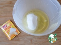 В другую миску кладём белки, к ним добавляем сахар и ванильный сахар, у меня Dr. Oetker. Взбиваем миксером в пену. |
