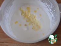 Желтки растираем с маслом, добавляем к ним шампанское и цедру лимона, у меня сухая. |
