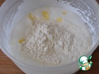 Все ингредиенты берём комнатной температуры. Берём три миски. В одну кладём муку, соль и разрыхлитель, у меня Dr. Oetker. |