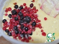 В последнюю очередь кладём замороженную ягоду. У меня смесь красной и чёрной смородины, у автора - облепиха. Можно брать любую мелкую ягоду, лучше с кислинкой. Перемешиваем лопаткой. |