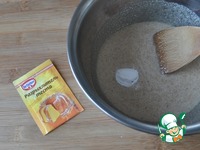 Насыпаем в горячую смесь разрыхлитель, у меня Dr. Oetker. Смесь сразу светлеет и начинает пениться. |