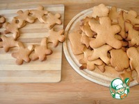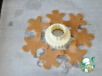 От теста отрываем кусочки и раскатываем в пласт толщиной 3 мм. С помощью вырубок "человечки" выбиваем заготовки пряников. |