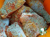 Окорочка присолить, добавить специи (розмарин, базилик, тимьян, мускатный орех, майоран, перец чили и проч.) Перемешать. |