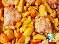 Описание: Наверное, у каждой хозяйки существует свой способ запекания окорочков с картофелем в духовке. Хочу предложить вам вариант сочного и очень ароматного блюда с яблоками и чесноком. Выходит прекрасный домашний семейный ужин.