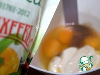 Смешать с мукой и разрыхлителем. |