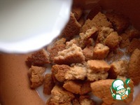 Смочить тёплым молоком или сливками. Количество зависит от сорта печенья и его впитываемости. |