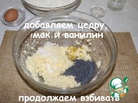 Добавляем цедру, мак, ванилин и продолжаем взбивать. |