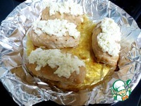 Достать рулеты из духовки и сверху выложить сыр с майонезом и чесноком. |