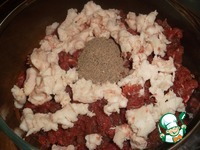 Мясо и сало промываем и обсушиваем. С сала снимаем шкуру, говядину зачищаем. Режем крупными кусками... |