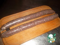 Плотно набиваем подготовленную чреву и получаем такие вот колбаски. Если где то заметите пузырьки воздуха – проколите иглой… |