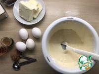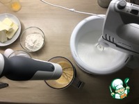 Снимаем и отправляем белки взбиваться до пиков, тем временем начинаем взбивать 200гр. сливочного масла комнатной температуры. |