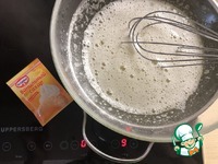 Для начинки берём два белка и 150гр. сахара + 1 пакетик ванильного сахара и отправляем на водяную баню, до растворения сахара. |