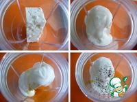 Для приготовления соуса, в стакан блендера (измельчителя) выложить фету, йогурт, влить оливковое масло, сок лимонный. Добавить свежемолотый черный перец. |