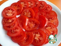 Помидоры нарезать кольцами (полукольцами), выложить на тарелку. |
