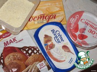 Добавить сыр, сметану, мак, белый шоколад, ванилин и венчиком смешать в однородную массу. Добавить муку, перемешать. |