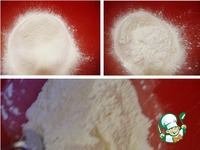 Муку просеять вместе с разрыхлителем в миску, добавить щепотку соли, крахмал и перемешать. |