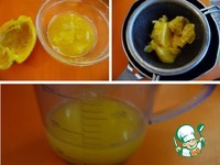 Апельсин разрезать на две половинки. Выдавить сок, мякоть отжать, процедить сок через сито. Часть сока у меня ушло в тесто, а остатки использовала для приготовления пропитки. |