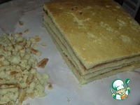 Каждый корж намазать кремом, края посыпать крошкой. Накрываю пакетом и оставляем для пропитки на ночь. |