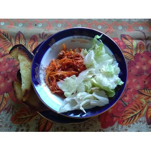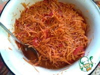 Из пряностей обязательно нужен красный острый перец. Остальное по вкусу. Я беру немного смеси «Азиатская кухня», немного кавказских трав (например, хмели-сунели), щепотку сушеного граната, совсем немного (один «скребок» по терке) мускатного ореха, половину чайной ложки сладкой паприки. Можно добавить травы с «горьковатым» вкусом. Смесь прованских или итальянских трав с данным конкретным блюдом абсолютно не совмещается. Смесь «Азиатская кухня» можно заменить приправой для корейской моркови, но это не совсем равноценная замена. Очень хорошо влить несколько капель красного Табаско, а еще лучше «Красного луизианского соуса». Возможно, перечный соус можно заменить острой аджикой, но я не пробовал. |
