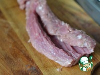 Свиную вырезку помыть, удалить пленки. Разрезать вдоль, не дорезая до конца. Образуем кармашек. |