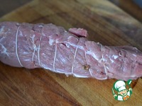 Кухонной нитью перевязать мясо, слегка натягивая нить. |