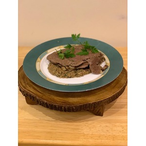 Описание: Покупал для фарша постную говядину. Но вдруг поступил заказ на стейки для ужина на Старый Новый Год. Делать из такого мяса настоящие стейки - жевать резину. Ну и решился на эксперимент - что не раз делал и до этого - смешать несколько рецептов. Ведь хотелось еще и красиво оформить. Итог - блюдо, которое пробовал в Болгарии (тушеное в печи мясо с луком) и вариант баклажанной икры.