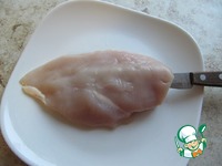 В курином филе сделать надрез в виде «кармана», затем слегка отбить. |