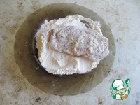 Обмакнуть во взбитое с щепоткой соли куриное яйцо. |