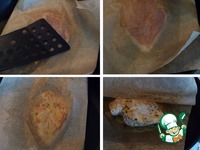 Половинку куриной грудки (у меня небольшие) посолить, выложить на пекарскую бумагу. Прикрыть второй половиной пекарской бумаги, слегка прижать. Выложить на хорошо разогретую сухую сковороду. |