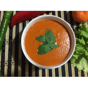 Для начала измельчим чеснок и морковь на терке, далее обжарим их до румянца на оливковом масле. В эту смесь добавим томатную пасту, тушим 5 минут, далее добавляем чечевицу и тушим еще 10 минут на медленном огне. Добавляем специи по вкусу и заливаем все 1 литром воды. Варим 30 минут на медленном огне с закрытой крышкой. Суп измельчаем блендером и подаем на стол.
